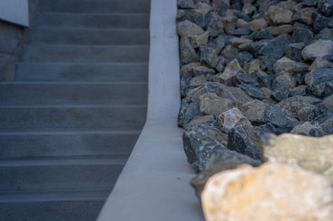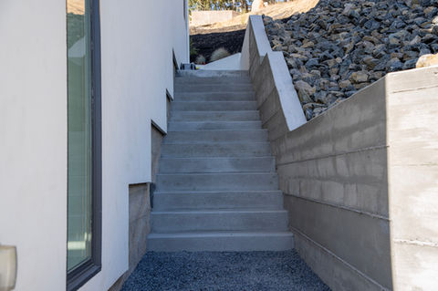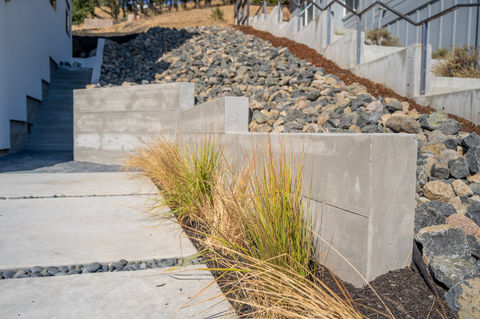 This residential project in Fountaingrove, Santa Rosa solved a common issue with sloped lots. We built a concrete retaining wall and stairway along the right side yard, giving the homeowner easy access to their backyard. To manage water flow, we also added riprap for drainage and erosion control.